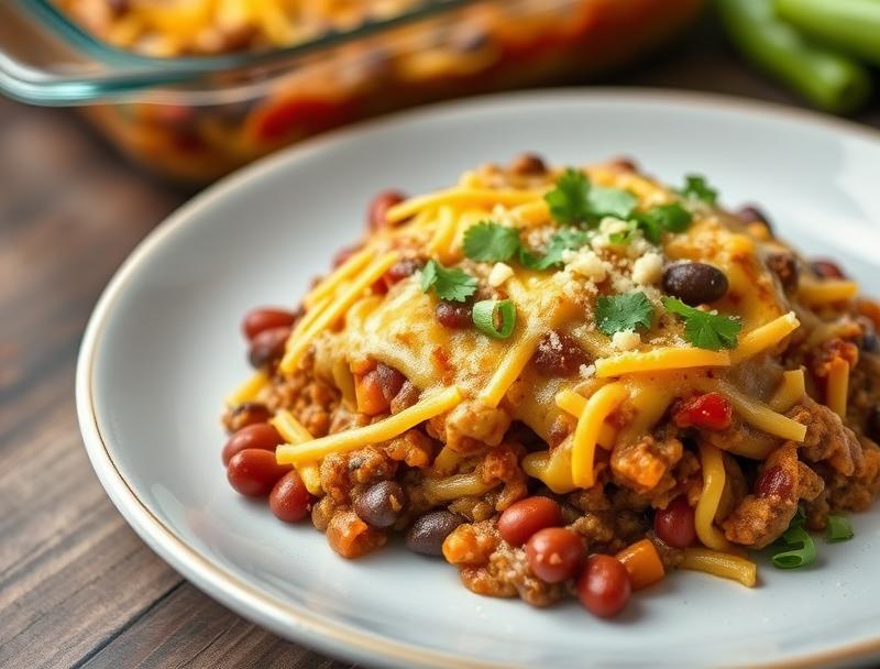 A flavorful and easy-to-make casserole combining seasoned ground beef, beans, cheese, and crunchy toppings, perfect for weeknights or gatherings.