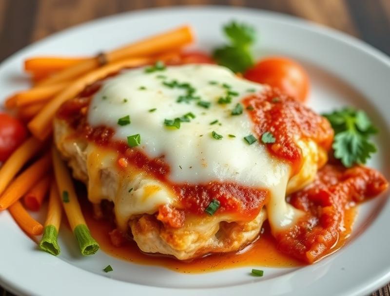 A simple and delicious baked chicken parmesan recipe perfect for dinner, featuring crispy breadcrumbs, flavorful marinara sauce, and melted mozzarella cheese.