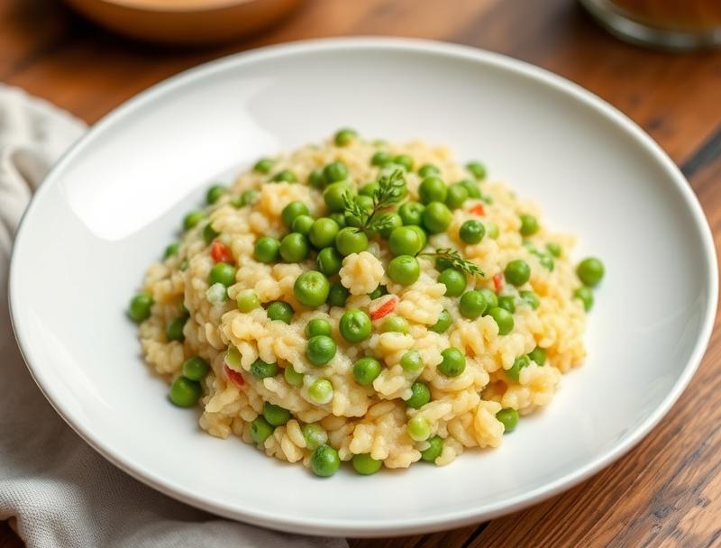 A quick and delicious Italian risotto recipe featuring fresh peas, perfect for weeknights or special occasions.