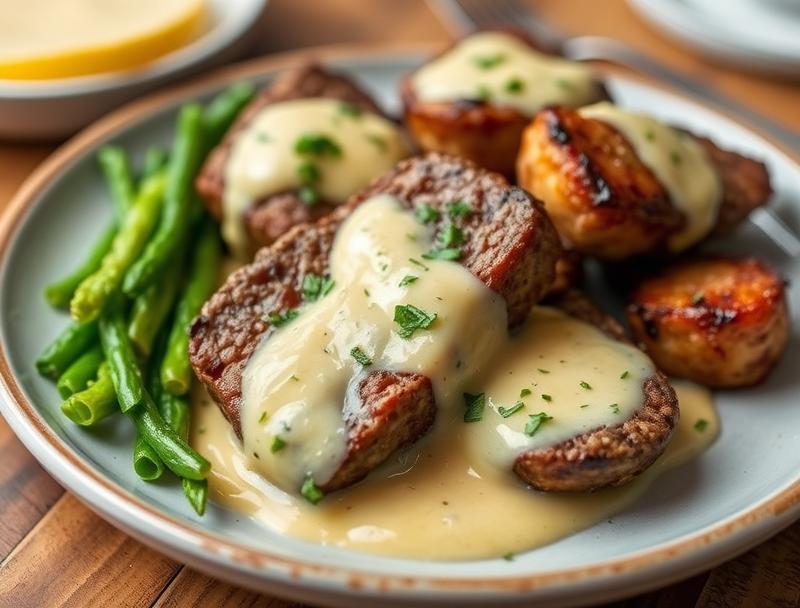 The crunch factor in this dish comes from the crispy exterior of the steak bites, which is achieved by cooking them in a hot skillet. To enhance the crunch, ensure the steak pieces are dry before cooking, and don’t stir them too much, allowing them to develop a nice crust on each side. The creamy Parmesan sauce adds a smooth contrast to the crunchy steak, creating a delightful texture combination.