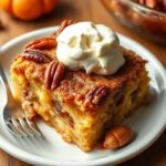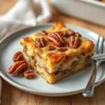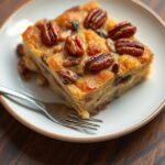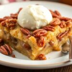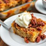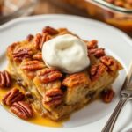 A delicious fall dessert combining the richness of pecan pie with the warmth of bread pudding, made easy with accessible ingredients and simple steps.