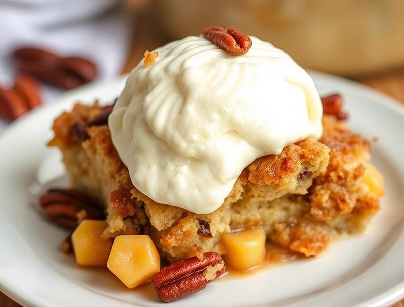 Achieving the right crunch factor is key to this dessert. The pecans provide a natural crunch, but to enhance this, ensure that the bread pudding is not overmixed, as this can lead to a dense, rather than light and airy, texture. Additionally, the caramel sauce adds a lovely gooey element that contrasts beautifully with the crunch of the pecans and the softness of the bread.