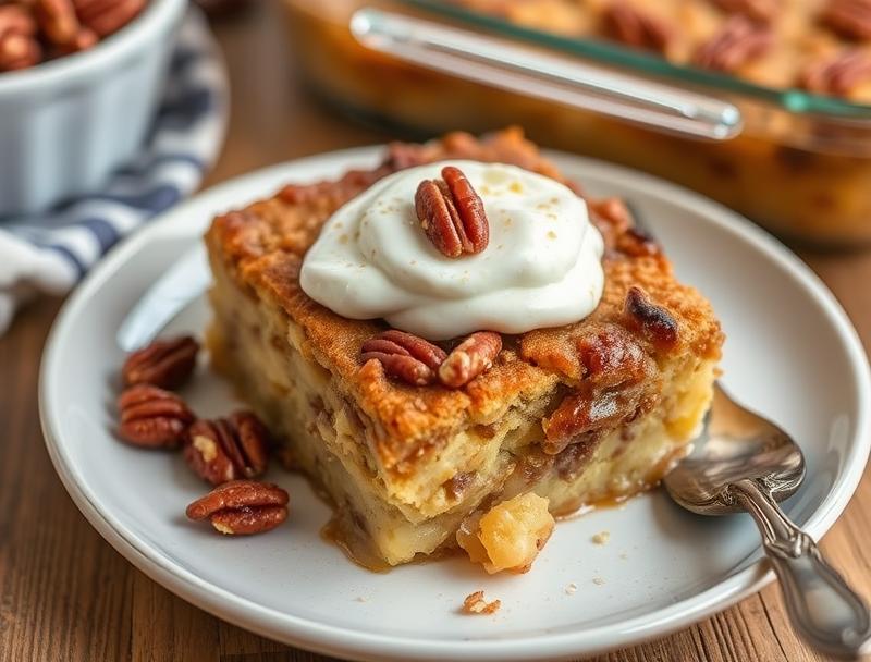 A delicious and easy-to-make bread pudding that combines the classic flavors of pecan pie with the comfort and ease of a bread-based dessert