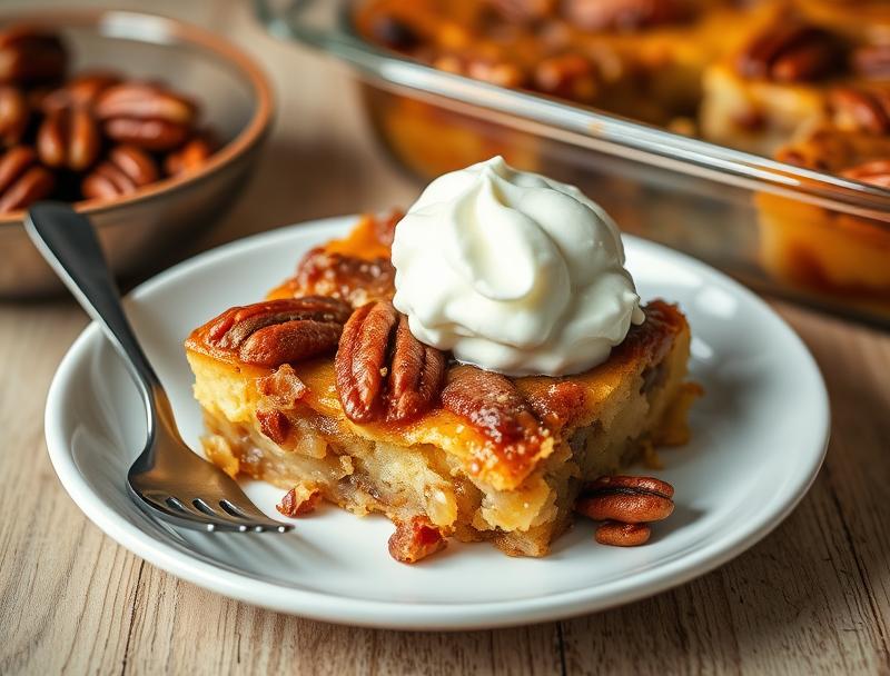 The combination of chopped pecans and a crunchy bread topping gives this dessert a perfect crunch factor. To enhance the crunch, try adding some chopped nuts or seeds to the top of the bread pudding before baking. You can also broil the bread pudding for an additional 2-3 minutes after baking to get a crunchier top.