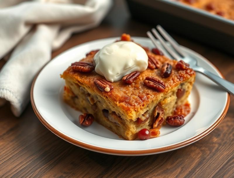 A delicious and easy-to-make pecan pie bread pudding perfect for fall, combining the richness of pecan pie with the comfort of bread pudding.
