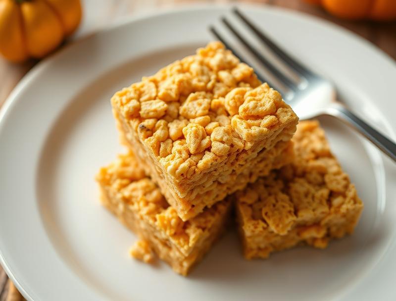 A delicious and easy-to-make dessert perfect for the fall season, combining pumpkin spice, marshmallows, and Rice Krispies cereal.