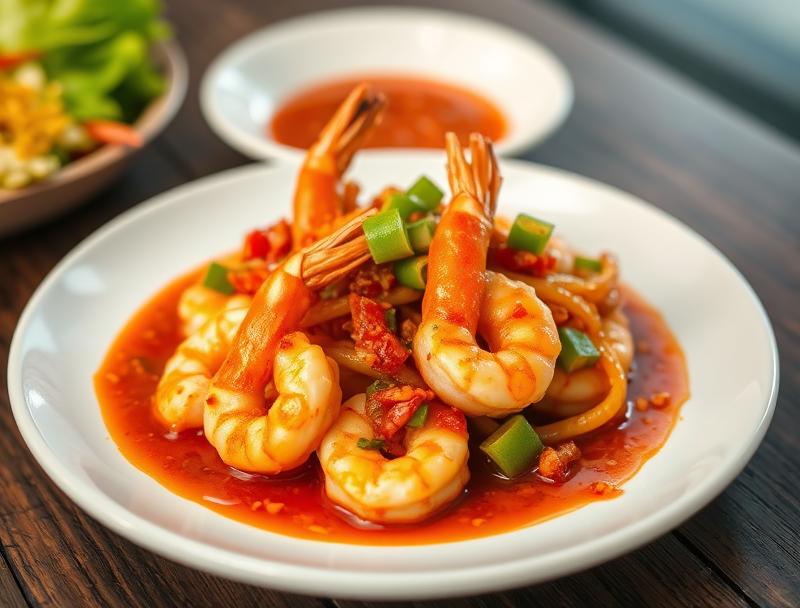 A flavorful and spicy shrimp dish made with garlic, chili crisp sauce, and succulent shrimp, perfect for a quick and impressive dinner.